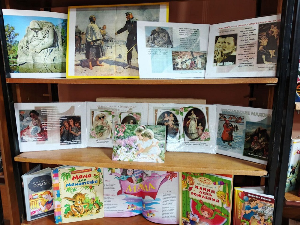 В библиотеке «Радуга» (ул. Предзаводская, 24) оформлена книжно-иллюстративная выставка «Лики матерей» (0+), приуроченная к предстоящему празднику всех мам, который в этом году отмечается в последнее воскресенье ноября – 30 ноября.