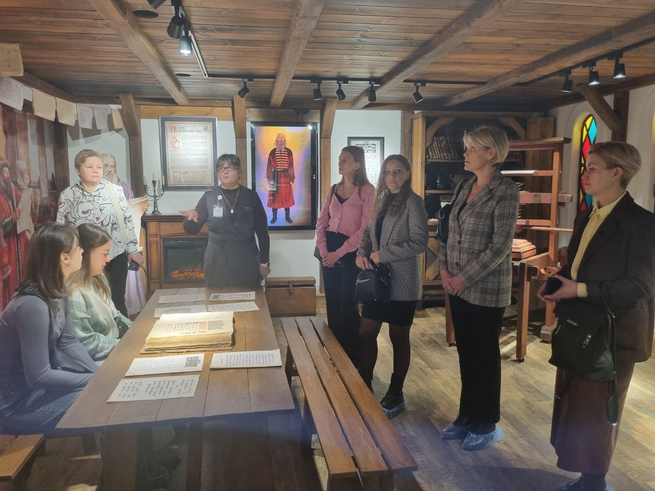 Участники побывали в Мастерской первопечатника Ивана Фёдорова – уникальном пространстве, где можно прикоснуться к истокам книжного дела и увидеть приёмы работы первопечатников. Экспозиция позволяет прочувствовать историческую связь современности с традициями книгоиздания.