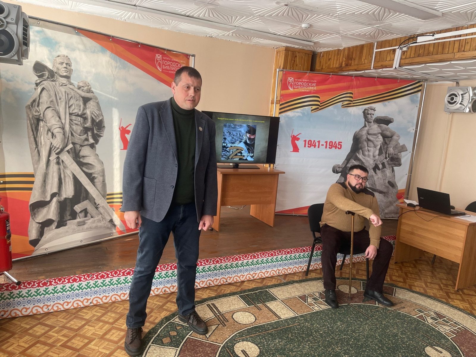 25 ноября в Библиотеке им. А. М. Береснева (б-р Строителей, 7) состоялась встреча участников СВО Алексея Литвака и Павла Кораблёва со школьниками Ленинского района города Кемерово.