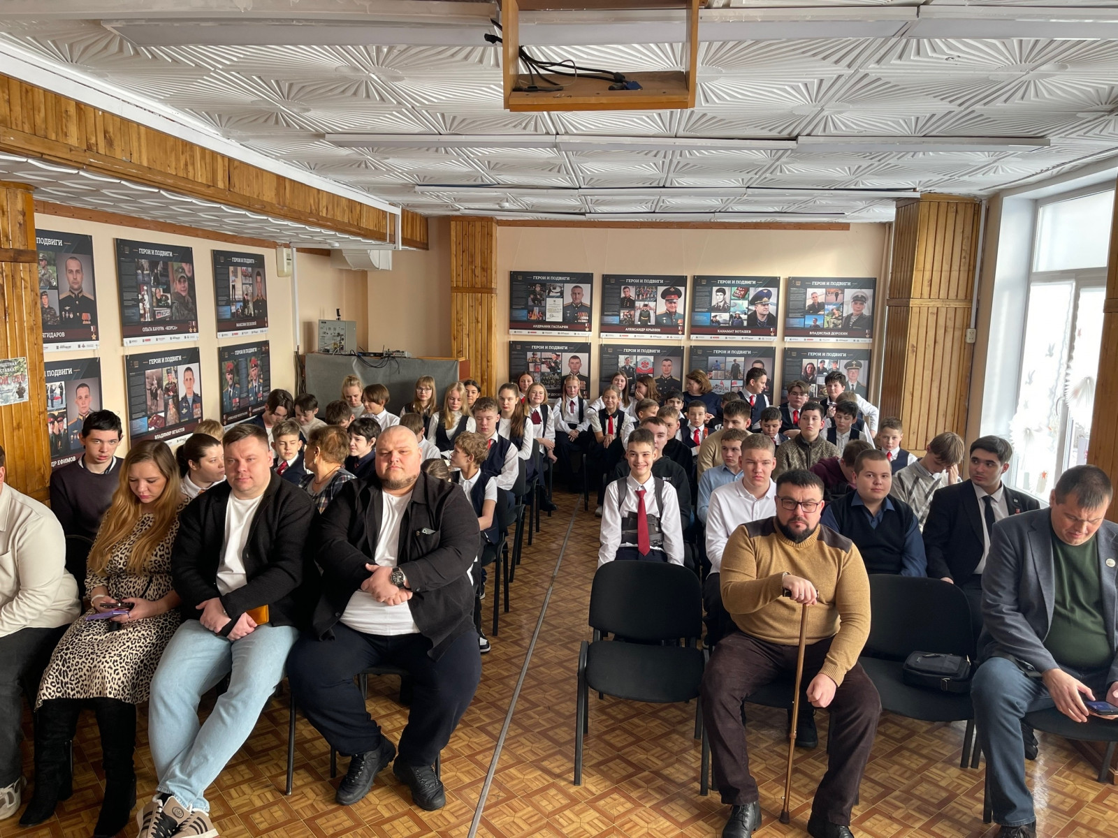 Старшеклассники встретились с настоящими мужчинами, героями нашего времени, военнослужащими, отличившимися проявленными героизмом, отвагой и мужеством в ходе исполнения своего долга перед Родиной. Гости рассказали о своей жизни, о своём боевом пути, испытаниях и преодоленных трудностях.