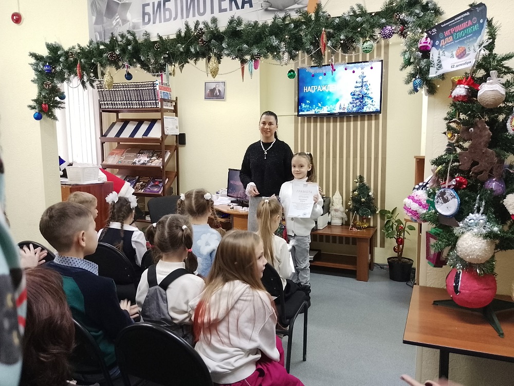 Программа включала не только церемонию награждения, но и интерактивные форматы новогоднюю викторину, подвижные игры и коллективное украшение библиотечной ёлки авторским танцем!