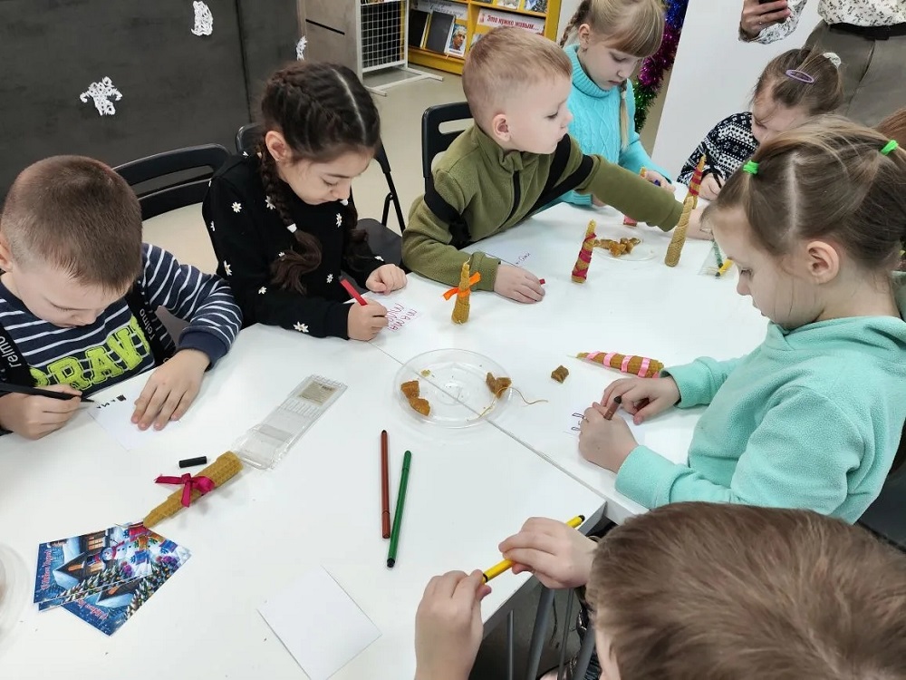25 декабря Библиотека семейного чтения «Книжная радуга» (ул. Новогодняя, 2) наполнилась звонким смехом и предвкушением чуда! Её новогодний наряд собрал вокруг себя воспитанников детского сада МБДОУ №69, которые окунулись в настоящую зимнюю сказку.