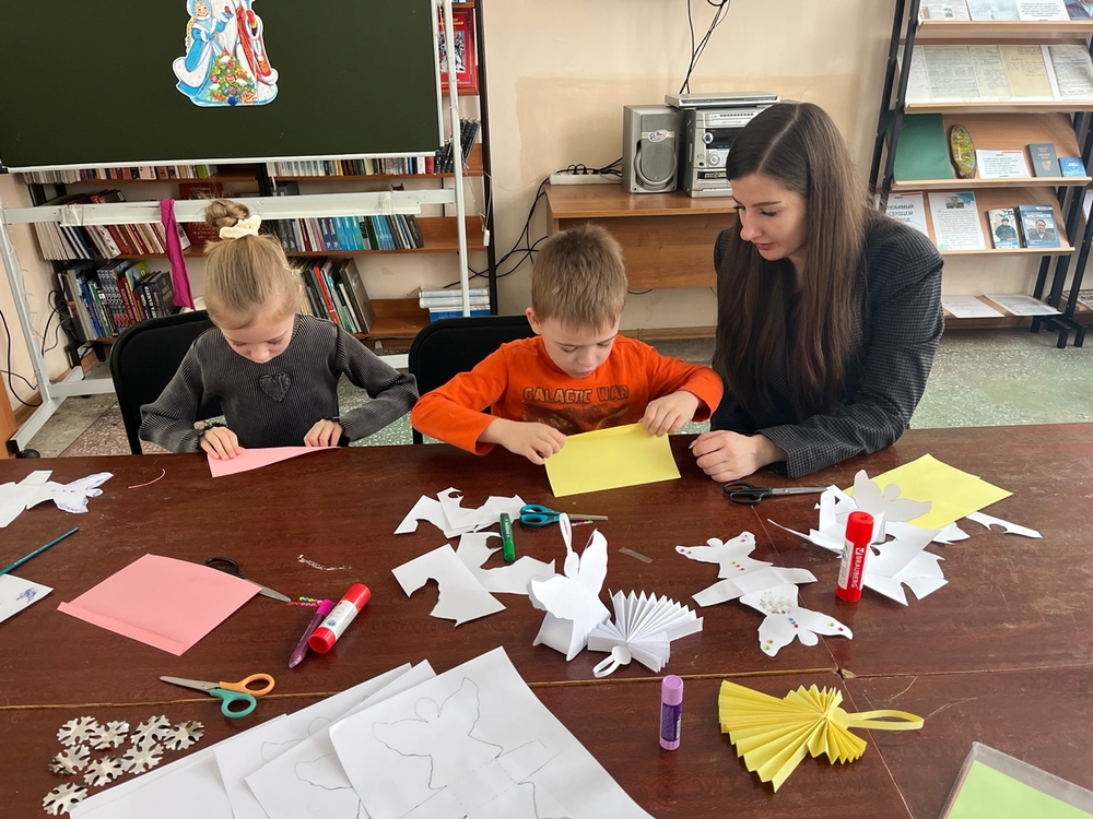 5 января 2026 года в Библиотеке им. Г. Е. Юрова (пр. Шахтеров, 37б) состоялся мастер-класс «Рождественские ангелы. Сказка своими руками».