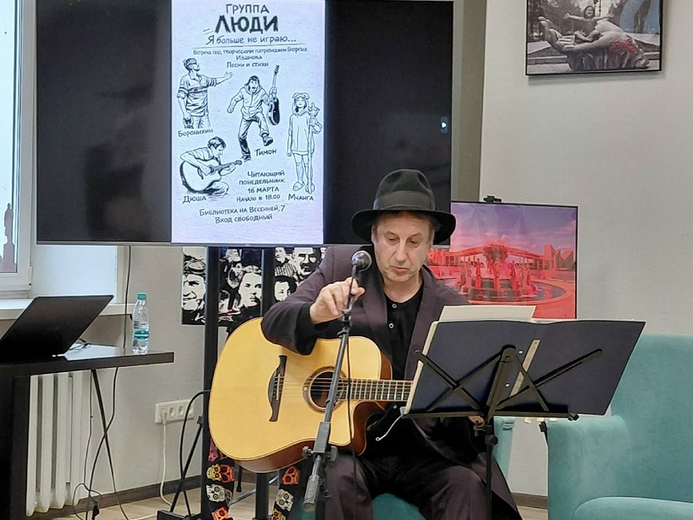 16 марта 2026 года в Библиотеке городских историй (ул. Весенняя, 7) состоялось очередное заседание клуба «Читающий понедельник». Встреча была посвящена жизни и творчеству поэта, прозаика и критика Георгия Иванова – одной из ключевых фигур русской литературы первой волны эмиграции. Ведущими вечера выступили основатели клуба – Александр Мухарев и Сергей Верховод. Они напомнили слушателям, что в своих произведениях Георгий Иванов сумел отразить мировоззрение целого поколения, расколотого трагическими событиями эпохи. Специальным гостем встречи стал музыкант Андрей Протасенко, известный экспериментами в области синтеза поэтического слова и музыки. Его творческий путь начался в 1987 году в Кемеровском государственном университете, где знакомство с будущими единомышленниками переросло в создание проекта «Марсианское Радио «ВДРЕБЕЗГИ»», а затем и арт-группы «Люди». Участие Андрея Протасенко наполнило встречу музыкальным содержанием: в его исполнении прозвучали стихи и песни. Зрители с удовольствием подпевали артистам, создав в зале теплую и доверительную атмосферу. Библиотека городских историй, тел.: 36-49-47.
