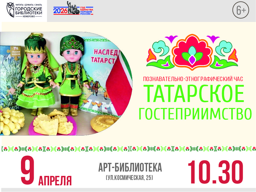 ![]() Книжные новинки ![]() Международная акция «Неделя космического кино»: показ фильма «Алексей Леонов. Заря. Кедр. Алмаз» ![]() Секреты татарского радушия ![]() Читателей «Книжной радуги» ждет путешествие к далеким планетам ![]() Молодежь выбирает здоровье ![]() «Ак Калфак»: татарский уголок в Культурном центре ![]() Русская печь как символ единства ![]() Опытные геймеры и новички испытывают свои силы ![]() Стихи о космосе и звёздах прозвучали в трёх библиотеках города ![]() Береста, матрешки, космос и народные игры: как провести вечер 18 апреля ![]() Традиция добра: разговор по душам за книгой и чаем ![]() Весёлое путешествие в страну вежливых слов и добрых стихов ![]() Секреты сибирского леса – в стихах кузбасских авторов ![]() День беременных в городских библиотеках ![]() Чомга, загадки и бумажные птички ![]() Космическое путешествие по маршруту «Восток» Чай с баранками, хороводы и портрет с классиком ![]() Проект по финансовой грамотности «ФинЧАС» ![]() Муниципальные библиотеки Кемерова запускают XX конкурс чтецов к Дню космонавтики ![]() Акция «Участникам СВО» ![]() WWW.КУЛЬТУРА.РФ – твой гид по культуре ![]() Тарифы на услуги МАУК «МИБС» г. Кемерово ![]() Оценка работы библиотек ![]() «Пушкинская карта» в городских библиотеках →