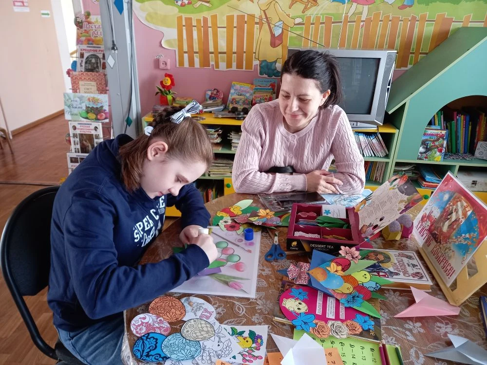 Пасха – это светлый праздник Воскресения Христова, наполненный светом, надеждой и теплом семейных традиций. В преддверии Пасхи в Детской библиотеке им. А М. Береснева работала выставка-мастерская «Христос Воскресе!», где читатели знакомились с православными традициями и тут же, на мастер-классе «Пасхальная палитра», учились делать пасхальные сувениры, открытки и корзиночки в техниках аппликации и оригами. Самые любознательные даже попробовали освоить азы церковнославянского языка. Возрастное ограничение: 6+ Творческая атмосфера царила и в Библиотеке им. Н В. Гоголя, где для участников фольклорного клуба «Горница» прошла праздничная встреча «Пасха радость нам несёт»: ребята узнали историю праздника, расписывали декоративные яйца и своими руками создали восковую свечу в форме сердца – символ домашнего уюта. Возрастное ограничение: 12 + Пасхальные встречи подарили радость созидания, живое общение с традициями и праздничное настроение.